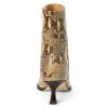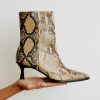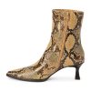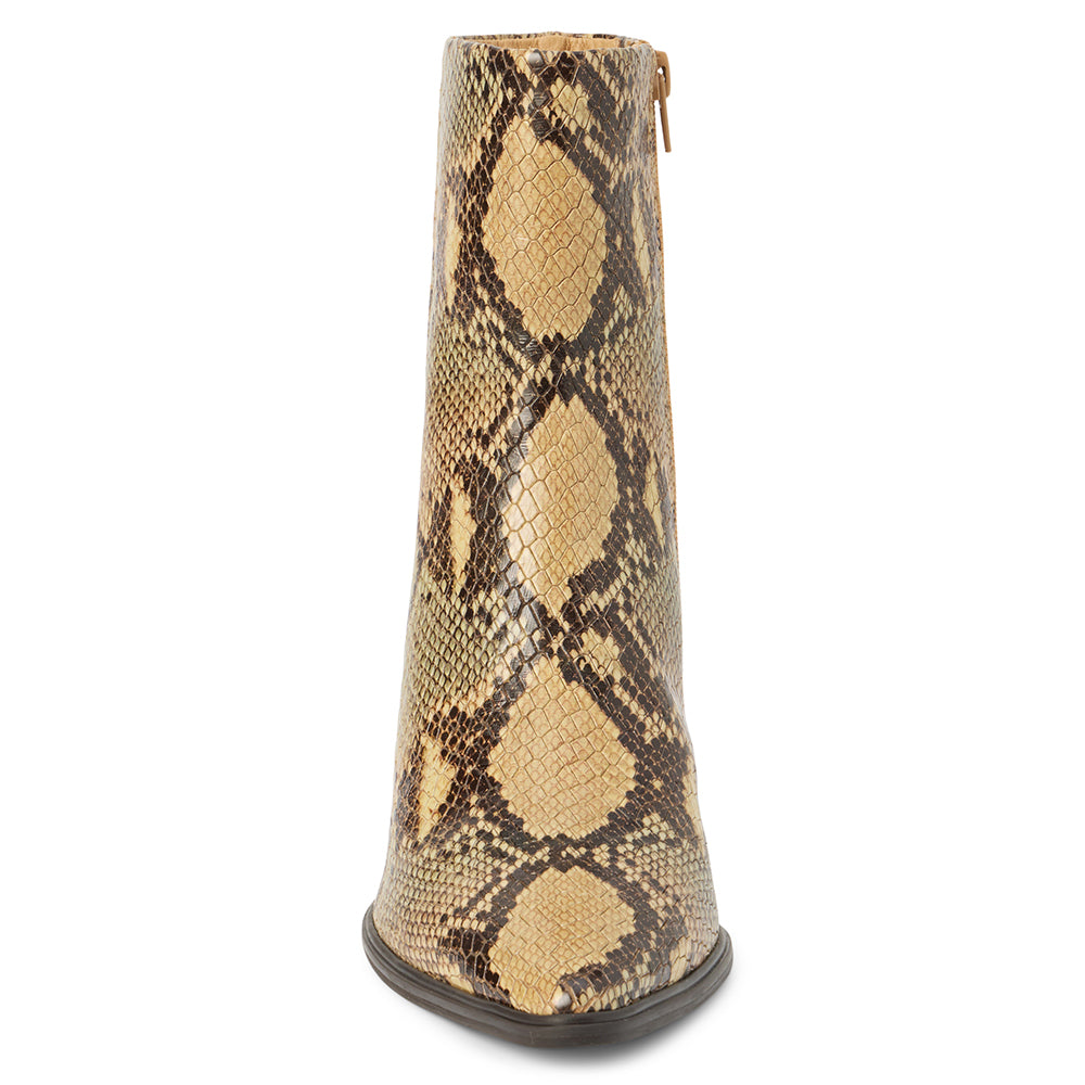Pointed-toe ankle boot on a sculpted kitten heel.