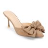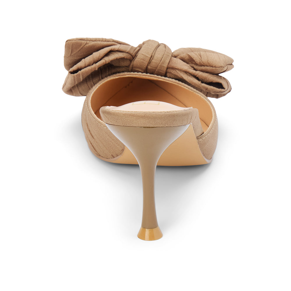 Vegan pointed-toe mule with sculpted heel and oversized knotted bow.