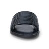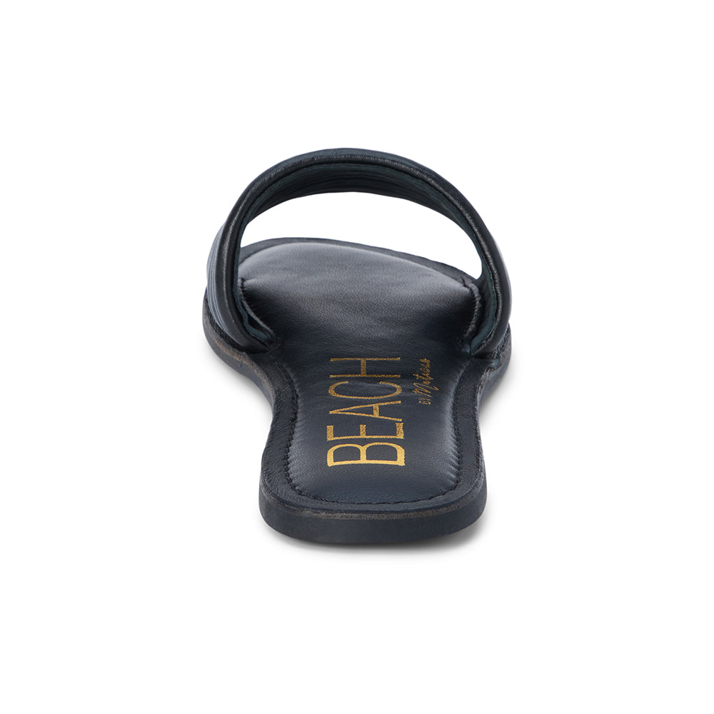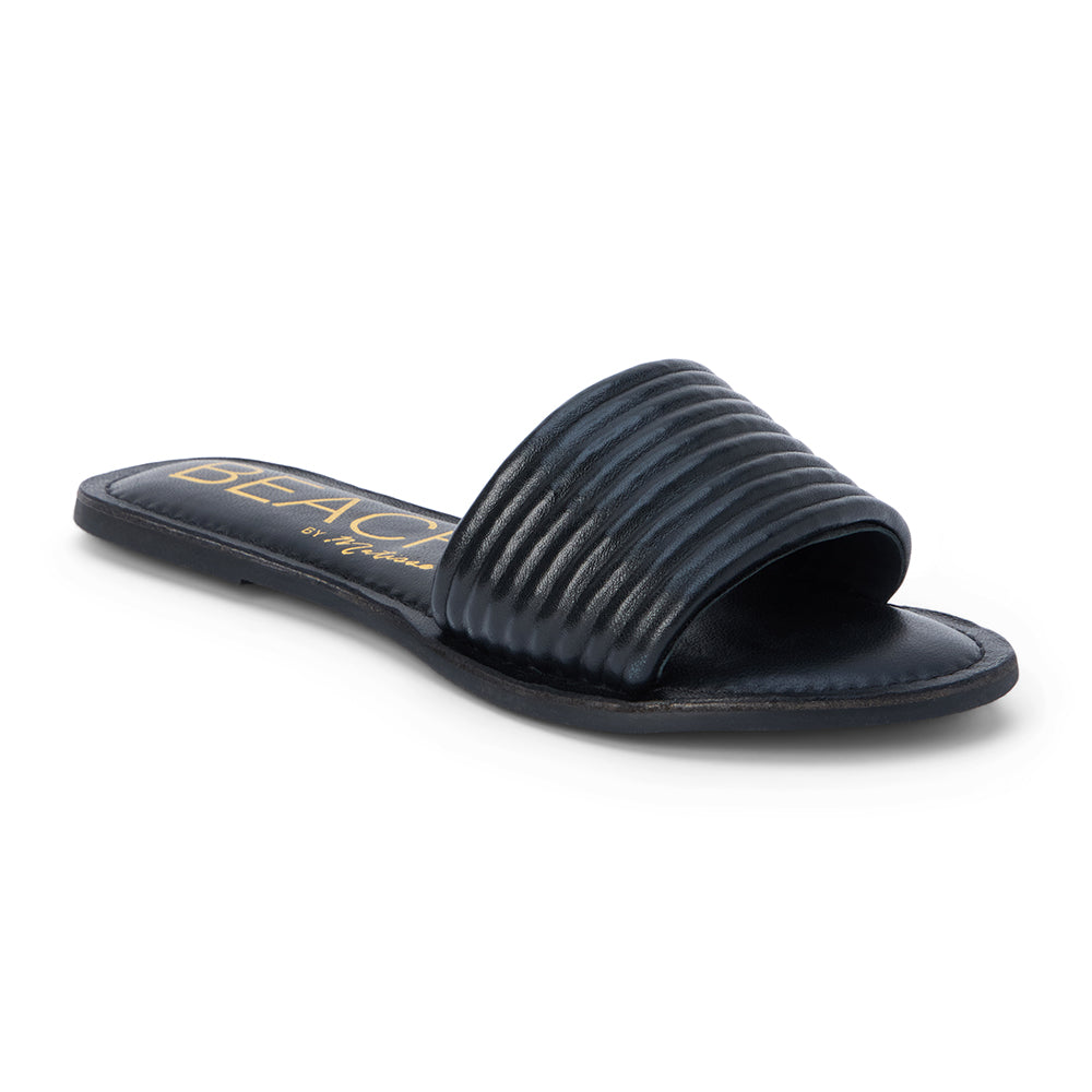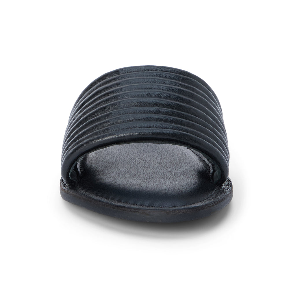 Flat leather slide sandal with ribbed detail.